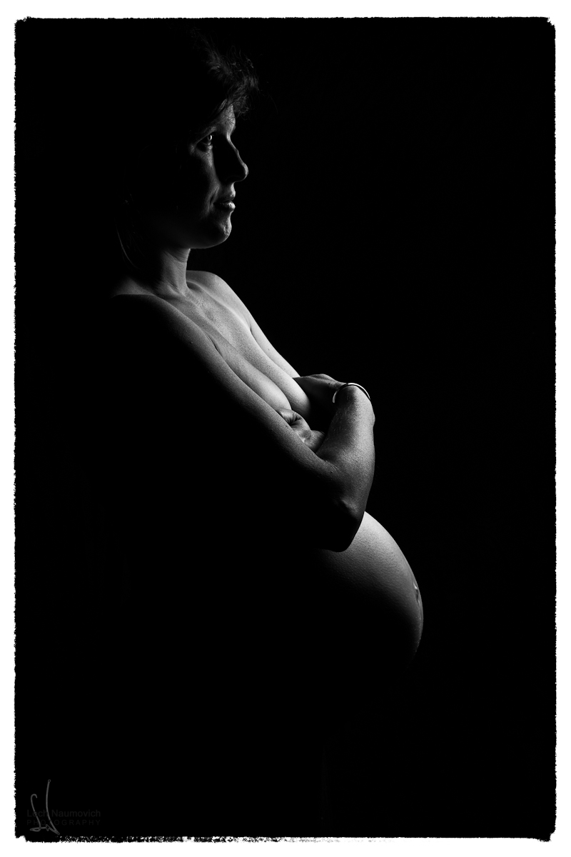 This photo was created with a single off-camera light with a softbox. (Oh yeah, and a pregnant lady too!) I love the creativity that emerges out of the constraints of a single light.
